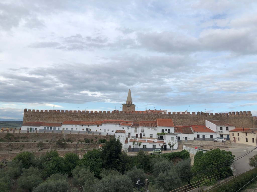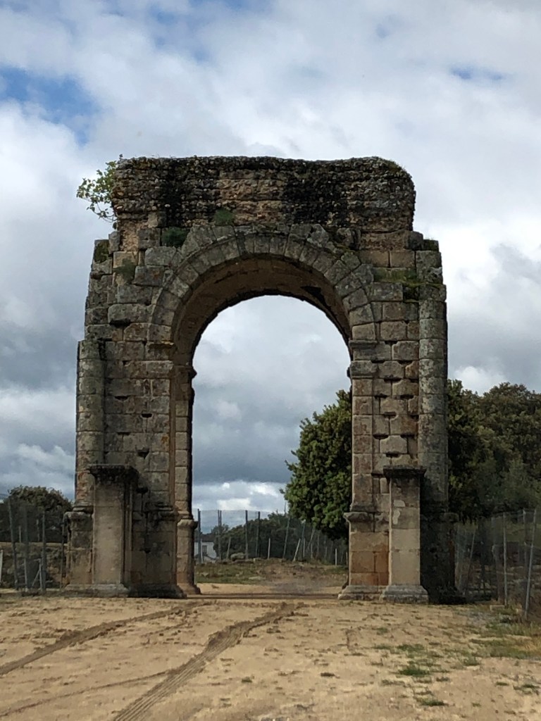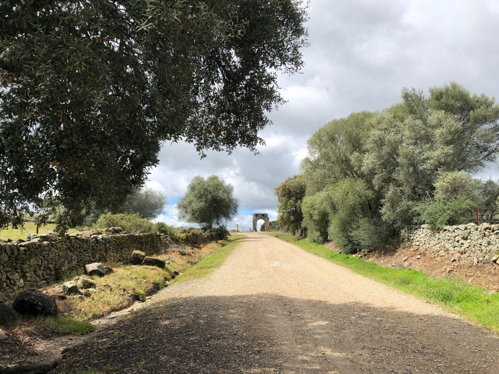 Albert kam auch gerade rein und setzte sich an meinen Tisch. Er geht heute weniger weit wie ich. Ich versuche heute 29km zu laufen bis zum Hostal Asturias in Jarilla. Dies liegt ca 2.5 km abseits vom Weg aber man kann so eine 37 km lange Etappe abkürzen. Wenn man nicht mehr mag kann man sich auch beim Arco, ein römischer Torbogen, nach 18 km abholen lassen.