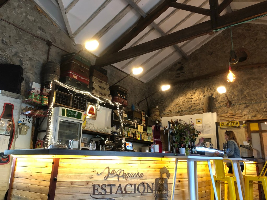 Der steinige Pfad hoch nach Puero de BéjarNochmals Blick zurück Die coole Bar im ehemaligen BahnhofEstacion in Puerto de BéjarDie Albergue