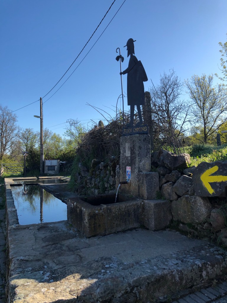 Ich habe gestern einen sehr schönen Abend verbracht mit Anna, noch einer anderen deutschen Pilgerin, die in die andere Richtung läuft und Bill aus Neuseeland. Es war so lustig. Bill und ich waren die einzigen, die diesen Bach überquert haben, die anderen wurden alle bereits beim Arco de Caparra abgeholt. Bill fragte mich: «Verrate mir wie du diesen Bach überquert hast», ich antwortete ihm ich habe die Socken ausgezogen, die Sohlen rausgenommen und bin einfach rüber marschiert. Tönt jetzt einfacher als es wirklich war aber er war beeindruckt😂. Bill ist sehr groß, er hat Schuhgröße 48. Er ist auf den Stein, den es weggeschwemmt hat, rauf gesprungen😱. Der war ca. 2m vom Ufer entfernt, da war ich beeindruckt. Wir saßen am Tisch und haben uns gegenseitig abgeklatscht.