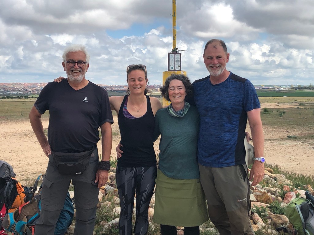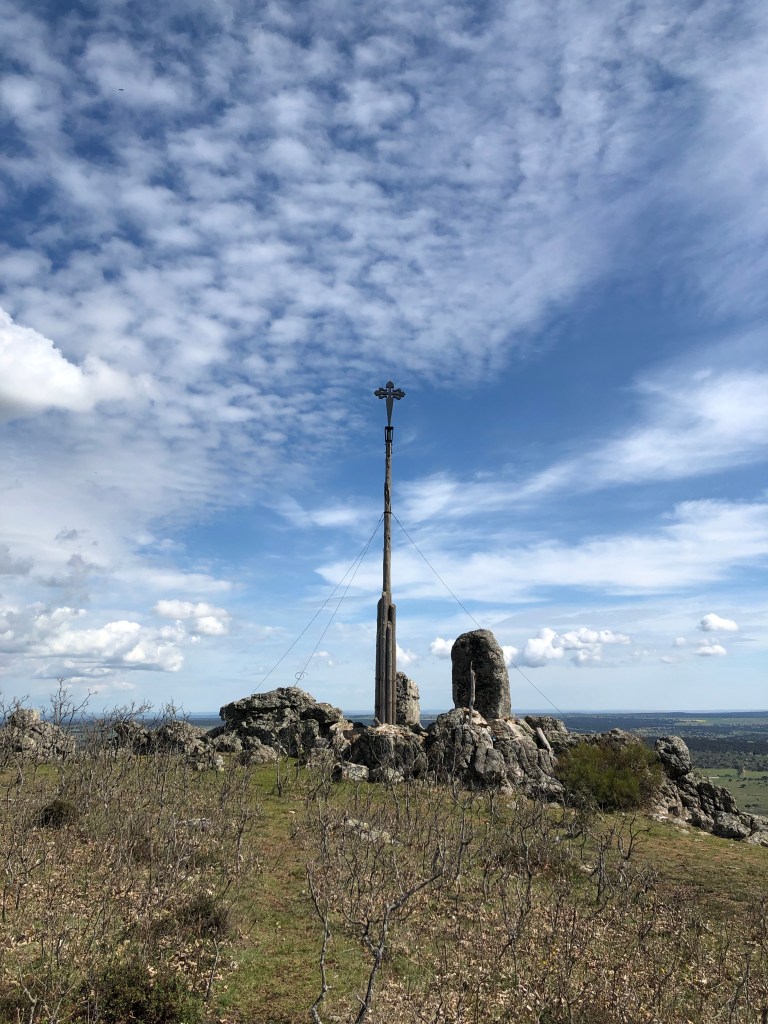 Dermaßen gestärkt liefen wir alle zusammen weiter bis zur Anhöhe Teso de Aldeatejada. Dort machten wir Pause bei einem Kreuz und einer fantastischen Aussicht auf Salamanca.