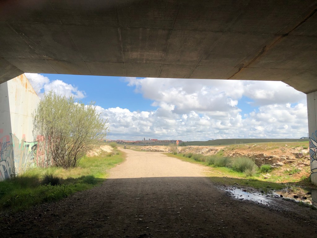Um 9.45h bin ich dann endlich los. Es ging quer durch die Stadt, alles geradeaus und ich passierte einen Kreisel nach dem anderen. Unter der Autobahn durch und dann wieder einmal entlang der Nationalstraße, die N630. Der Weg hinein nach Salamanca war um einiges angenehmer.