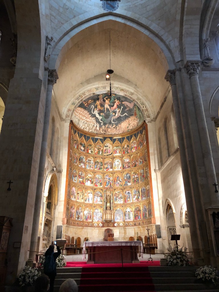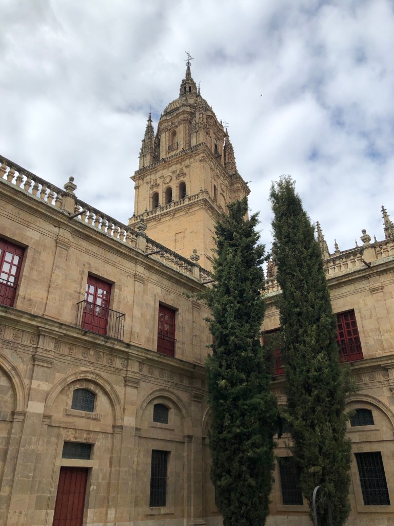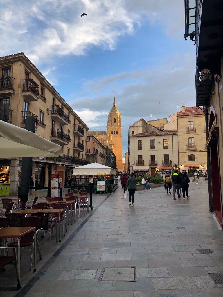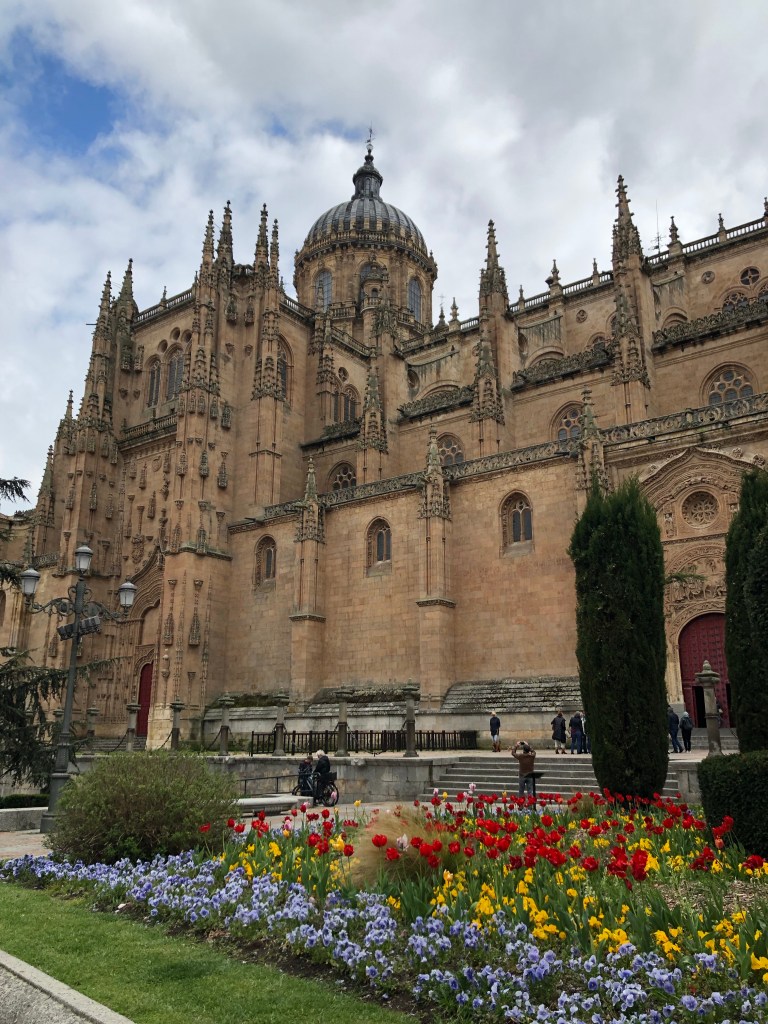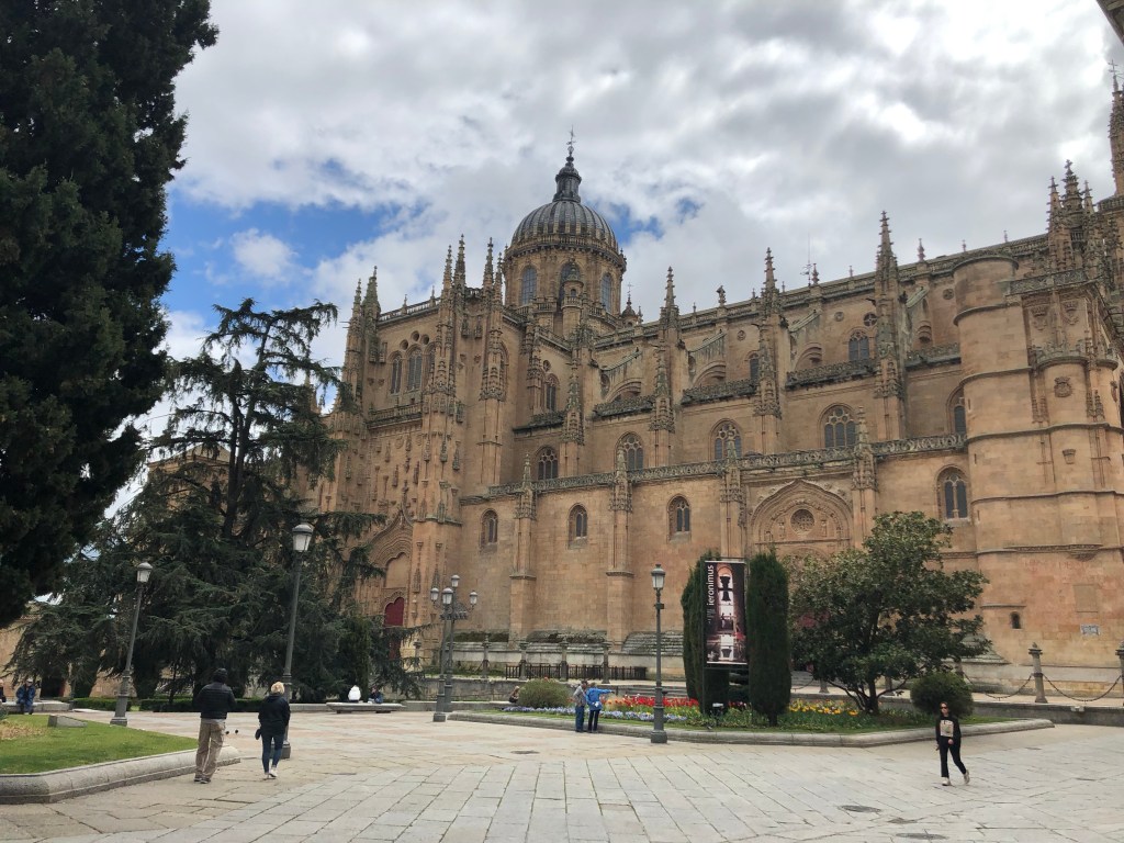 Dann ging es weiter nach Salamanca. Für eine größere Stadt war der Zugang ziemlich einfach. Wir wurden durch einen schönen Park geführt und dann standen wir bereits vor der Puente Romano. Über die Brücke gelangt man direkt in die Altstadt von Salamanca. Schon von der Brücke aus hatte man eine atemberaubende Aussicht auf die Kathedrale.