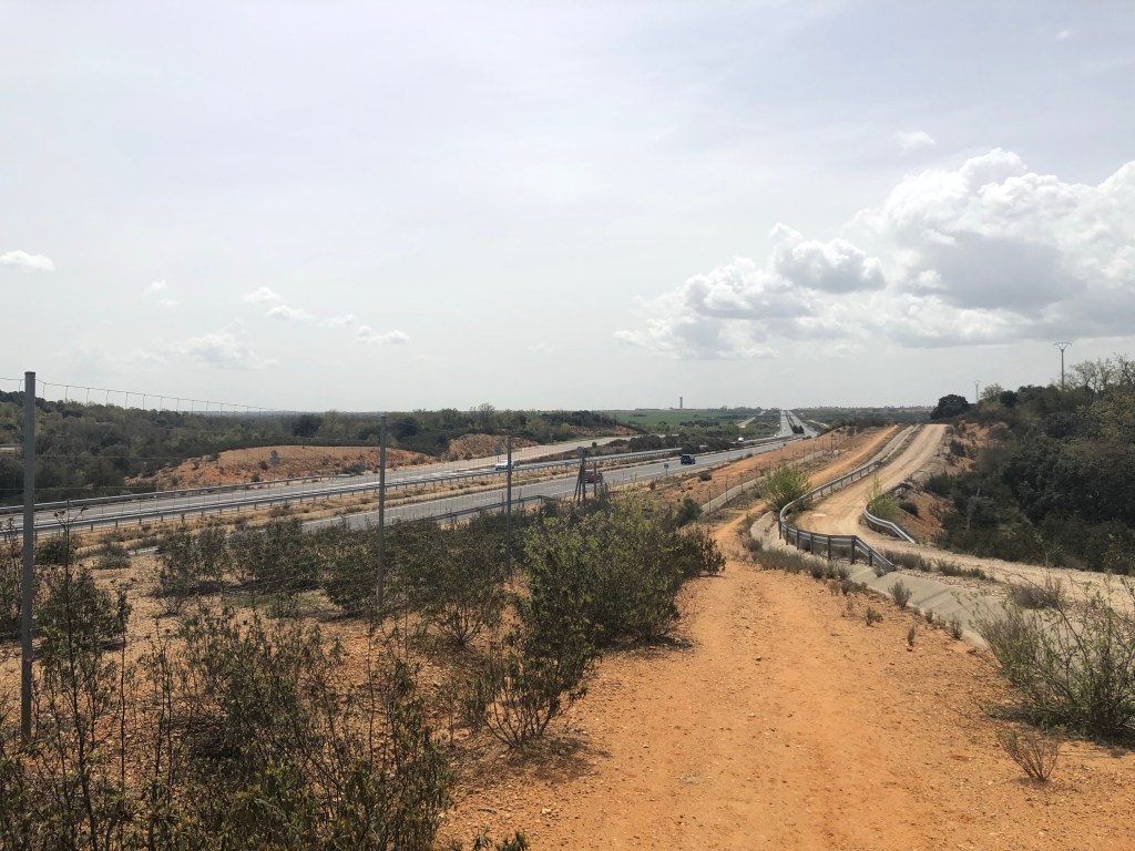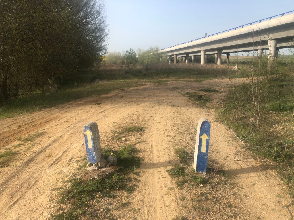 Ganz rechts die Autobahn, in der Mitte der Pilgerweg und links ein Landwirtschaftsweg. So sieht mein Tag heute aus.