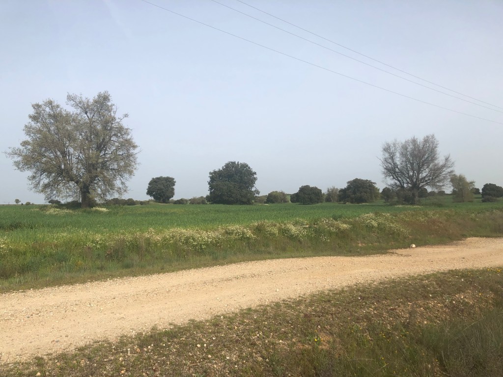 Nach ca. 5 km ging es endlich weg von der Straße auf einen Feldweg. Endlich kamen mal meine Stöcke zum Einsatz. Hier zog ich mich sogleich um denn es begann warm zu werden. Heute schien nämlich mal wieder die Sonne. Sie sagen hier, dass dieser April der kälteste seit Jahren sei. Wir sind schon oft am frieren hier aber es scheint auch immer wieder die Sonne. Lieber kühl als Hitze, denn Schatten gibt es auf der Via de la Plata nur selten.