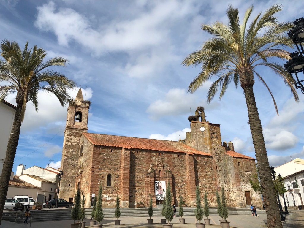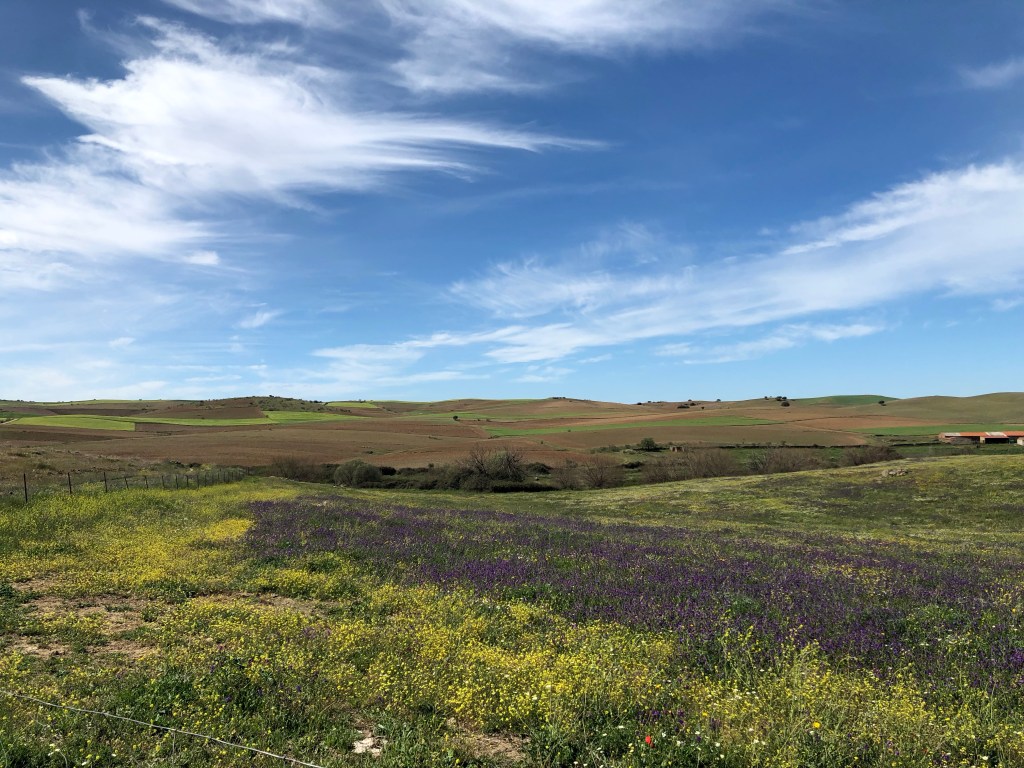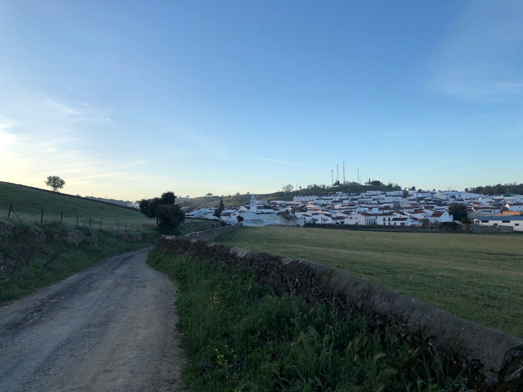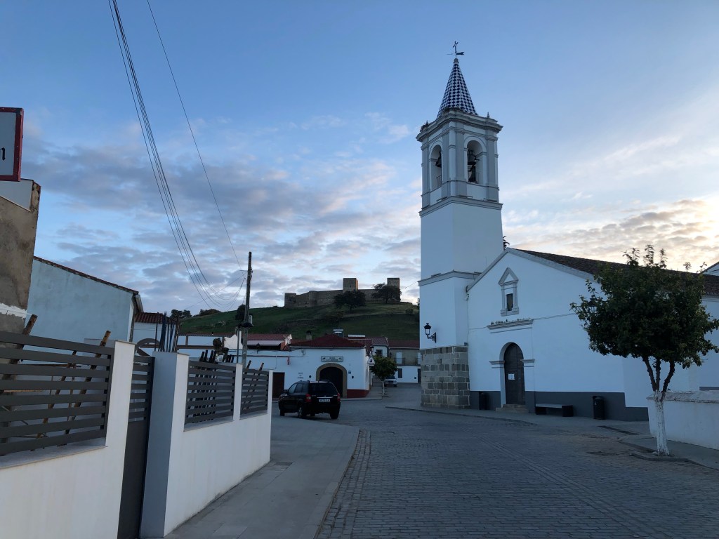 Der letzte Teil des Weges zog sich dahin. Es war auch nicht mehr ganz so schön und ich wollte einfach ankommen. Mir taten die Füße weh. Von weitem konnte ich Fuente de Cantos sehen. Da angekommen lief ich bis zur Kirche und dann schaute ich auf Google Maps wie ich zur Casa Vincenta komme. Ich musste nur alles geradeaus und dann links. In der Casa Vincenta, welches auch ein Restaurant ist, war gerade Mittagszeit. Ich schloss mich dem gerne an und aß einen großen Salat mit Thunfisch. Lecker! Endlich etwas anderes als Bocadillo con Jamon.