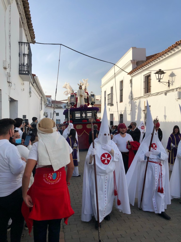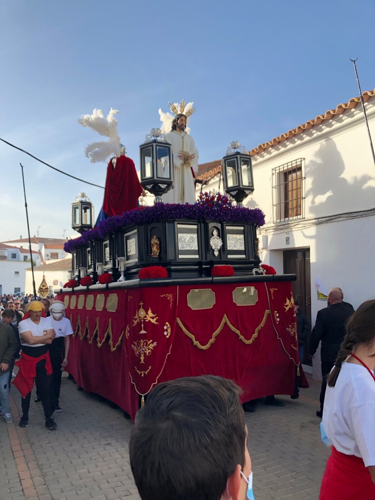 Heute fängt die Semana Santa an (Osterwoche). In Spanien eine riesengroße Sache. Ich hörte von weitem schon die Musik und die Trommeln. Leider sah ich sie nur noch von hinten. Ich sah aber, dass alle in die andere Richtung strömten und folgte ihnen einfach. Ja und dann sah ich die Prozession. Ich hatte mich an einer Ecke postiert wo Hundekacke am Boden lag. Ich machte immer mal wieder jemanden darauf aufmerksam und sie waren alle dankbar nicht reingetreten zu sein. War meine gute Tat von heute.