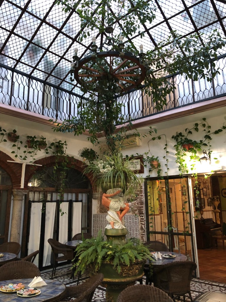 Ich aß in einem wunderschönen Innenhof, das Hotel ist wirklich sehr empfehlenswert. Als ich gestern ins Zimmer kam war es auf 29 Grad aufgeheizt worden. Ich bekam gleich Wallungen und riss das Fenster auf. Ich ließ es dann auf 21 Grad abkühlen. Dies war mein erstes geheiztes Zimmer bisher. Was für ein Luxus!