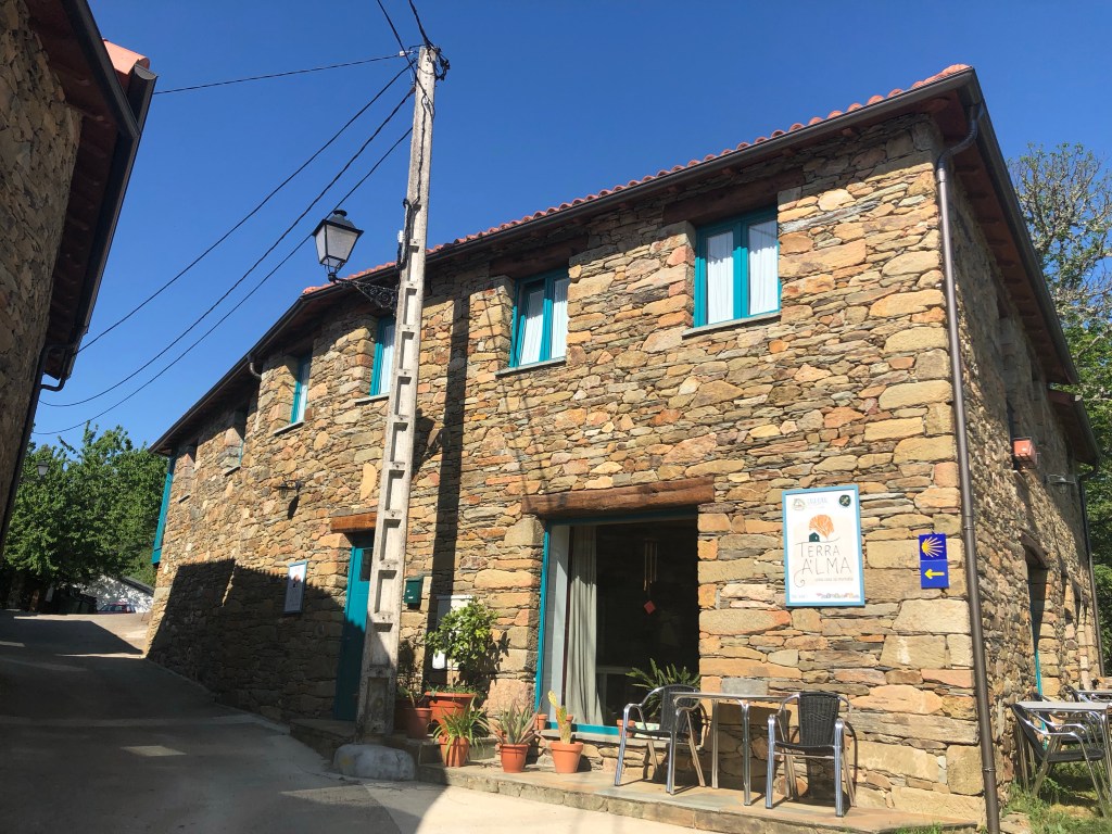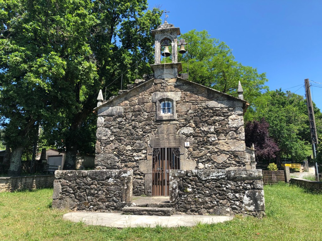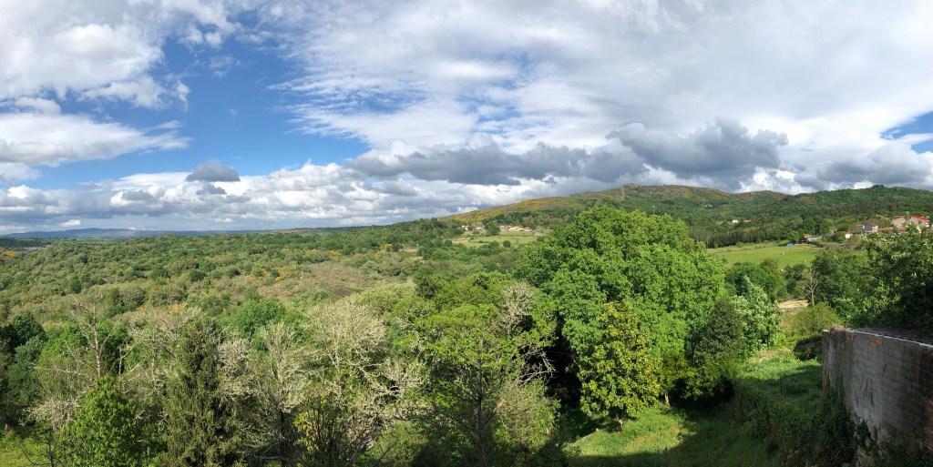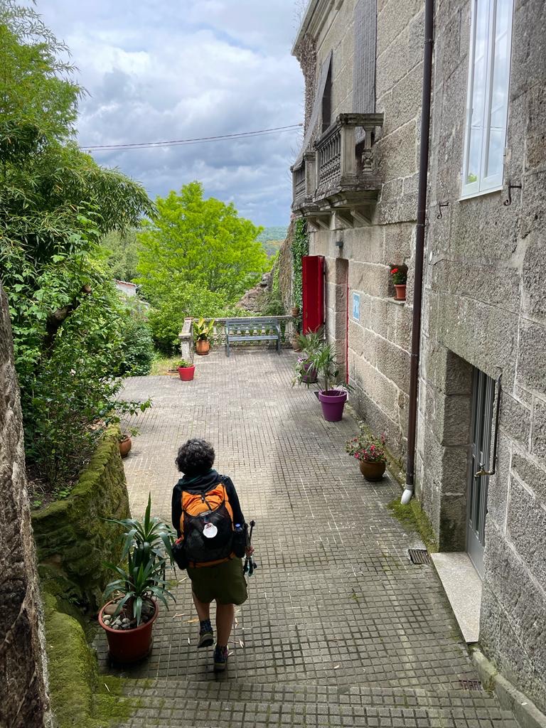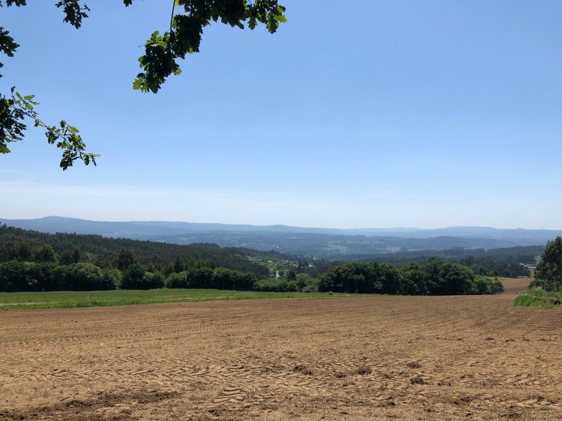 Auf der anderen Seite ging es natürlich wieder hoch bis Outeira wo wir eine Pause machten bei der Santiago Kapelle. Wir aßen unser letztes Brot mit Käse. Ein sehr idyllischer Ort mit zusätzlich schöner Aussicht. Die Albergue da sah auch sehr schön aus. Aber wir mussten noch ein paar Kilometer weiter laufen.
