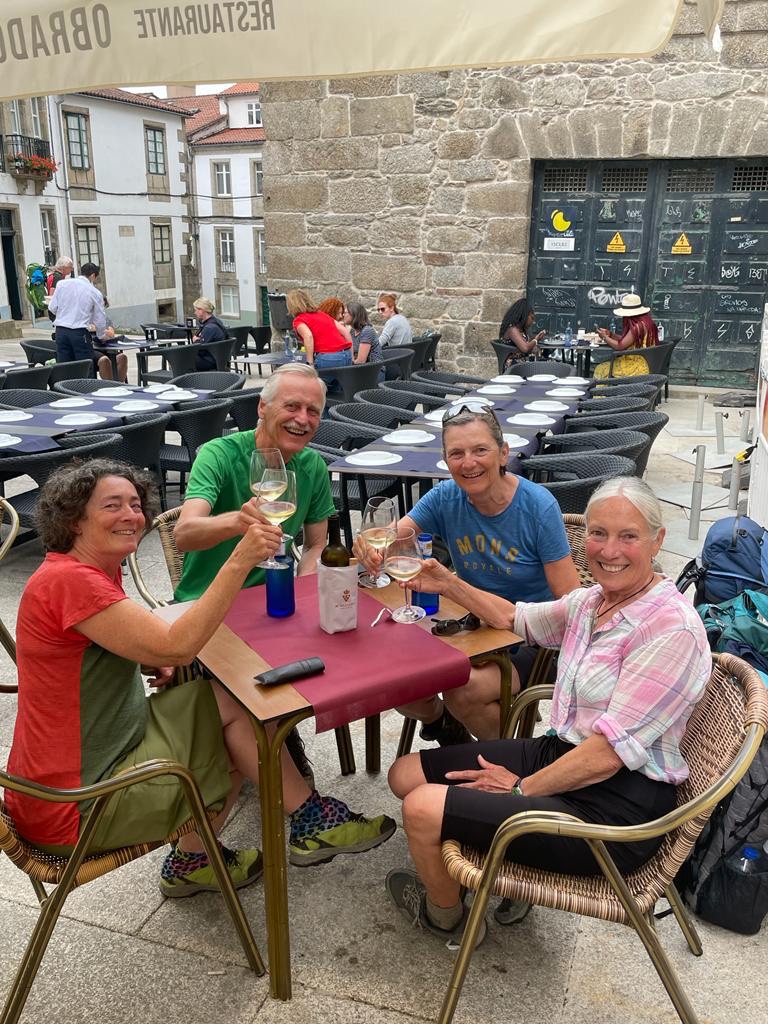 Seit wir mit Esther und Karsten unterwegs sind haben sich unsere Etappen ziemlich verkürzt aber wir haben auch viel Spaß. Morgen sind wir in Ourense und dann werden unsere Wege sich wieder trennen bis Santiago. Grace und ich werden ein Taxi nehmen für ca 5 km und dann bis zum Kloster in Oseiras laufen, ein Höhepunkt auf dem Camino Sanabres. Esther und Karsten laufen anders, vielleicht treffen wir sie aber auch schon vorher wieder. Auf jeden Fall wollen wir die letzten Kilometer nach Santiago zusammen laufen.