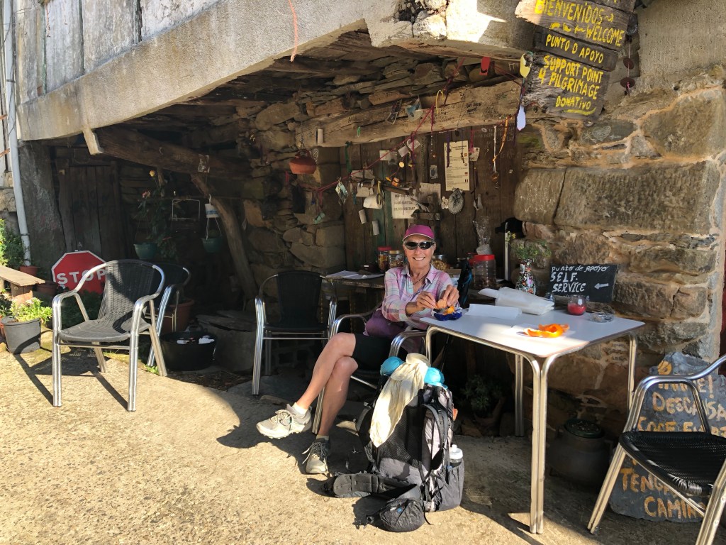 Bald schon waren wir in As Eires wo wir einen Stopp einlegten weil es Kaffee, Kekse, Früchte und kalte Getränke gab. Dies wurde alles vor einem Haus bereitgestellt und man konnte Geld in eine Dose werfen. Der Halt war uns natürlich sehr willkommen. Da wir hier nicht aufs Klo konnten wollten wir gleich anschließend eine Toilettenpause einlegen.