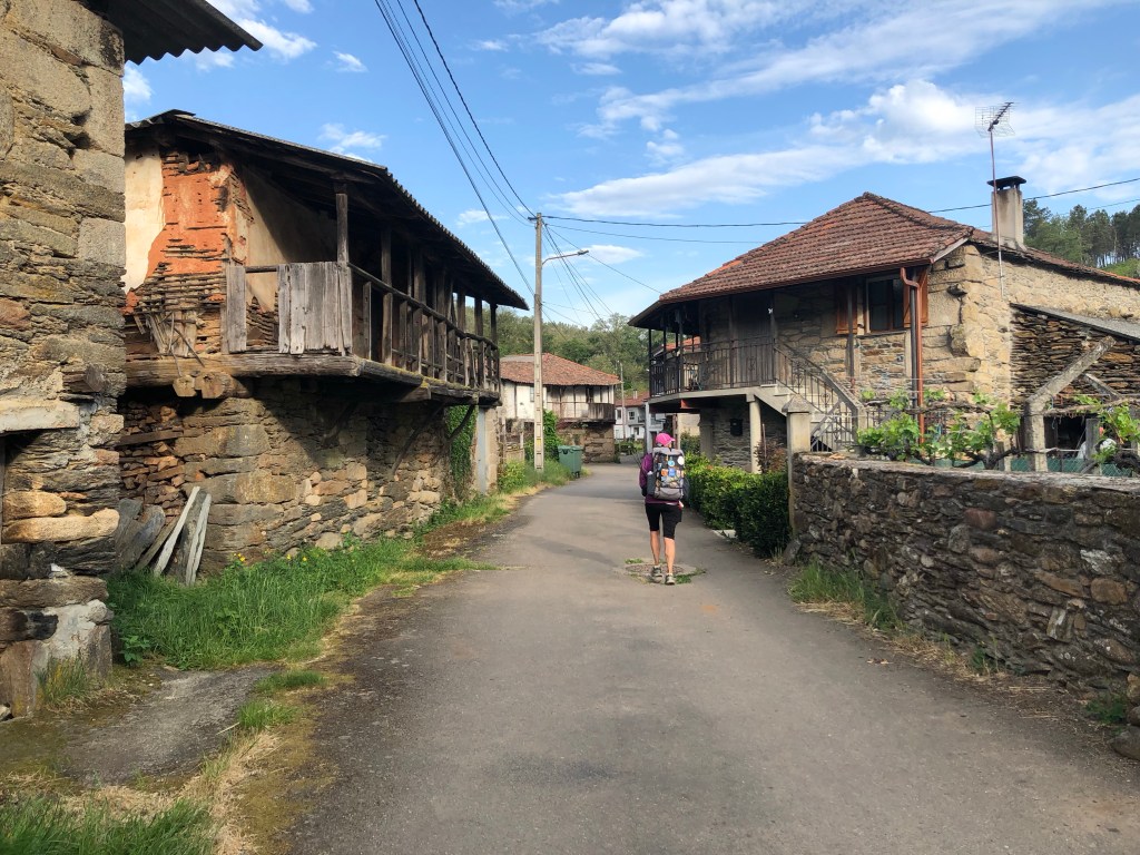 Es folgte noch ein saftiger Abstieg nach Villar de Barrio. Der ging ganz schön in die Beine und als ich unten war fühlten sich meine Beine an wie Gummi. Grace und ich benutzen beide die gleiche Technik, nämlich dass wir in kleinen Schritten runterrennen wenn es steil ist. So schont man die Knie und kriegt schön starke Oberschenkel😉. Man muss einfach darauf achten, dass Gewicht vorne zu haben sonst kann leicht nach hinten ausrutschen und auf den Rücken fallen. Alte Sherpa Technik übrigens.