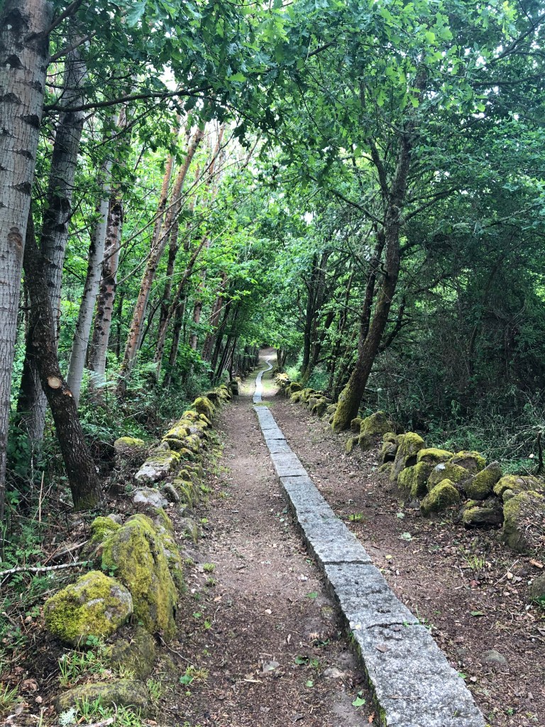 Ein Teil des Weges ging mal wieder der Strasse entlang aber es gab auch sehr schöne Wege durch typisch galizische Wälder mit vielen Edelkastanien und Farnen. Entlang des Weges hat es oft diese alten Mauern voller Moos. Typisch galizisch eben.