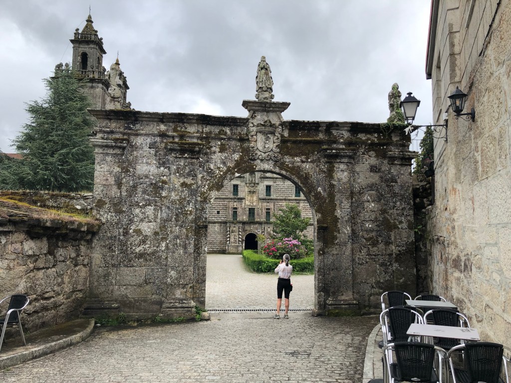 Der Weg war zwar auf der Strasse aber trotzdem sehr schön. Um 15.30h kamen wir endlich in Oseira an und begaben uns natürlich, wie immer gleich in die Bar. Ich aß schwarzen Reis mit Tintenfisch. Sehr lecker😋! Anschließend gingen wir mit gut gefülltem Bauch in die neu gebaute Herberge von Oseira auf dem Klosterareal.