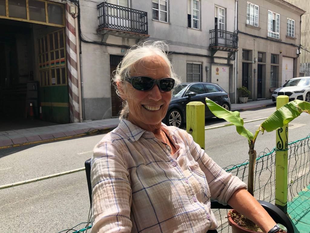 Esther und Karsten liefen vorne weg und Grace und ich nahmen es gemütlicher. Wir hatten abgemacht in ca. 8 km die nächste Pause in Reboredo zu machen aber ein dringendes Bedürfnis brachte uns schon früher in eine Bar. 2 km später fanden wir Ester und Karsten auf einem Kinderspielplatz wo sie auf 2 Bänken ein Mittagsschläfchen abhielten. Natürlich mussten wir sie fotografieren😂. Wir setzten uns in die Bar und tranken einen Kaffee. Als die anderen beiden aufwachten taten wir so, als seien wir schon ewig da.