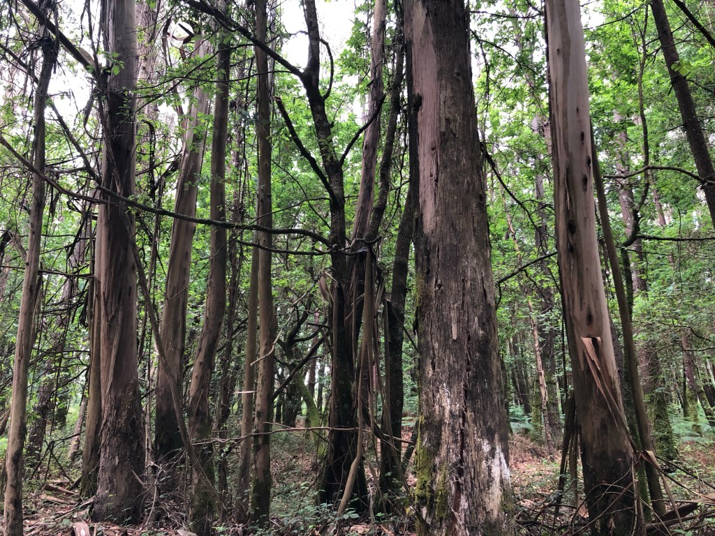 Die Eukalyptusbäume sind schon beeindruckend mit ihren meist kerzengeraden glatten Stämmen. Sie überragen fast alle anderen Bäume und schälen sich bis nur noch der silbergraue Stamm übrig ist. Die Bäume werfen so kleine Kapseln ab, so vermehren sie sich auch. Wenn sie frisch sind, sind sie hellgrün und riechen stark nach Eukalyptus. Ich habe schon ein paar von diesen Dingern zu Hause als Erinnerung.