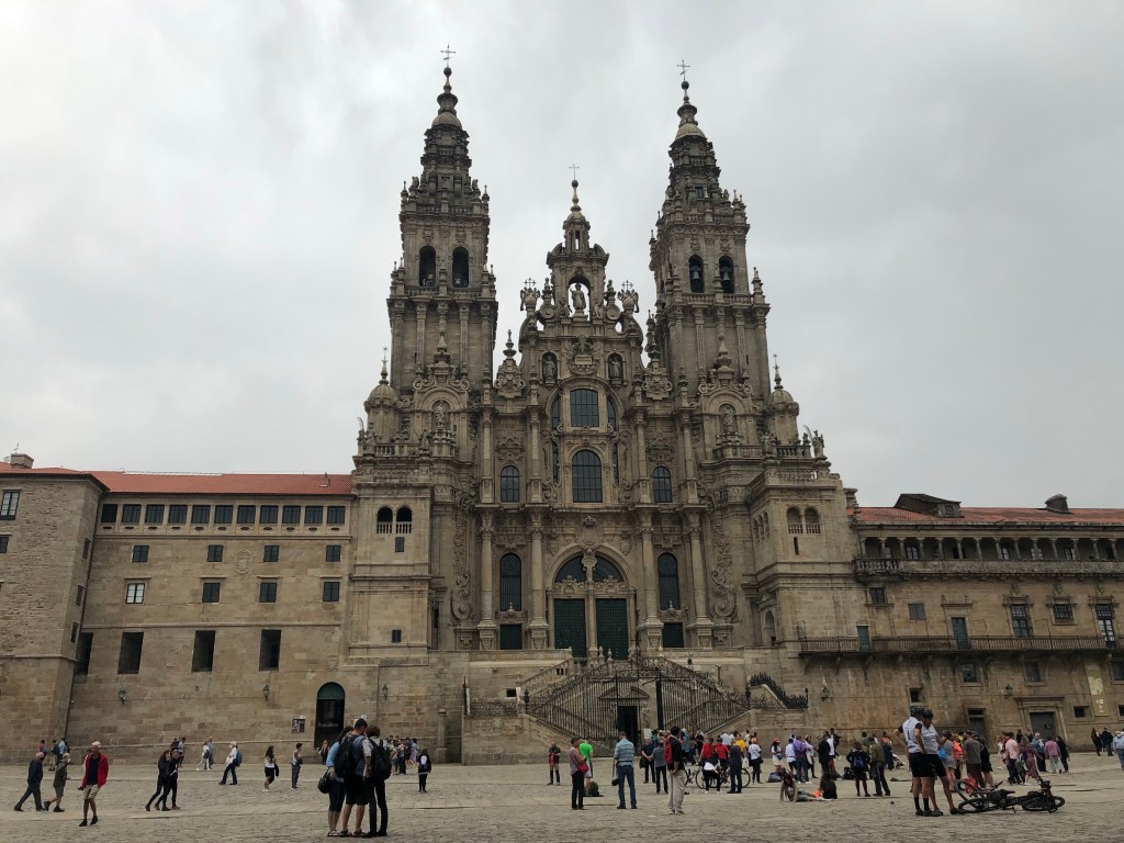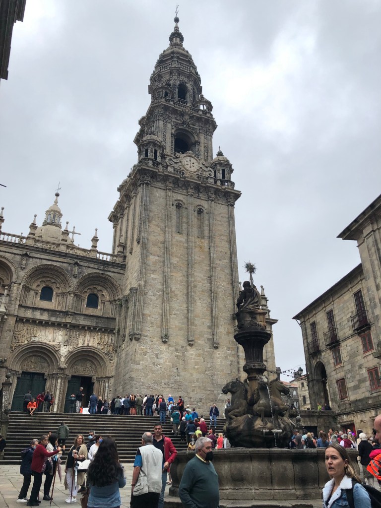 Wir machten das obligate Foto vor der Kathedrale und setzten uns dann ganz entspannt auf den Platz und genossen die Atmosphäre. Gefühlsmäßig waren hunderte andere Pilger und Touristen auf dem Platz. Ganze Bikertruppen und auch Tourigrinos, das sind Pilger mit kleinem Tagesrucksack die ihr Gepäck von Hotel zu Hotel transportieren lassen.